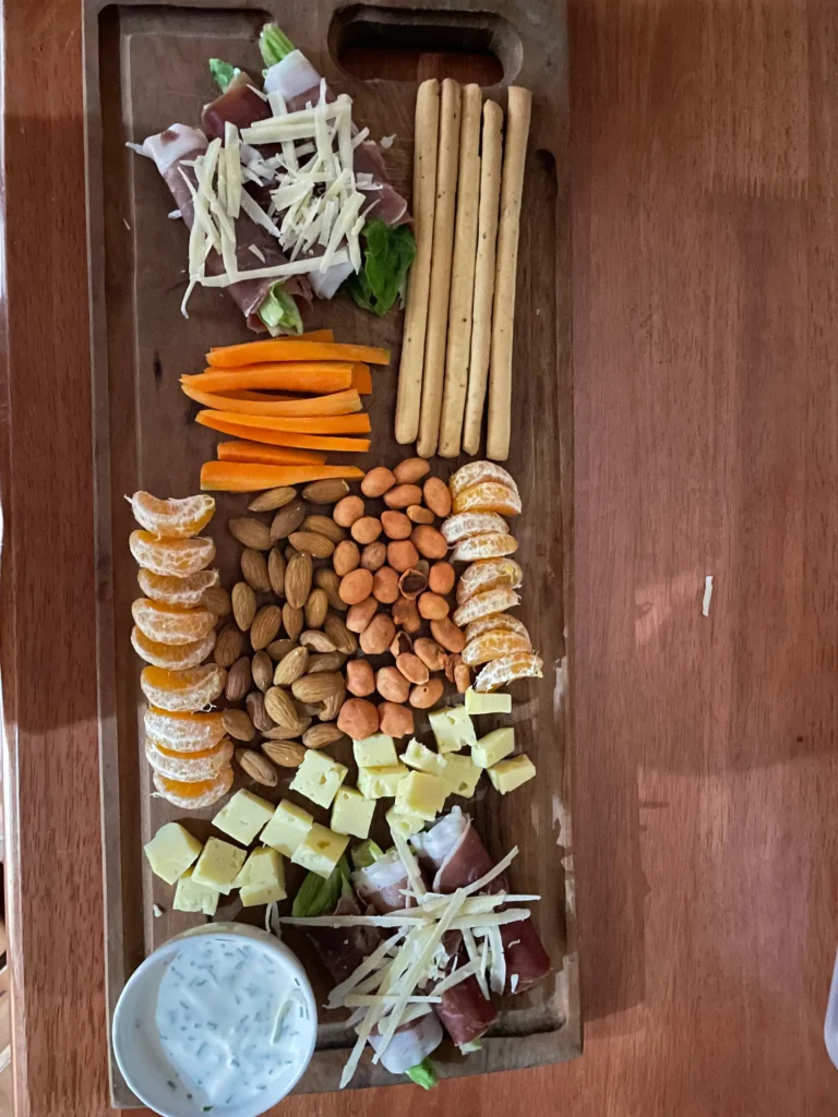 Una tabla pensada para compartir y acompañar momentos de descanso, ideal para disfrutar junto a la tinaja o al atardecer, mirando la laguna y dejando que el tiempo pase.